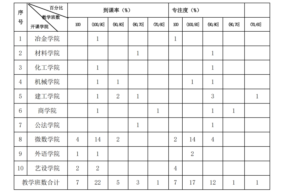 一、教学班学生到课率、专注度情况
