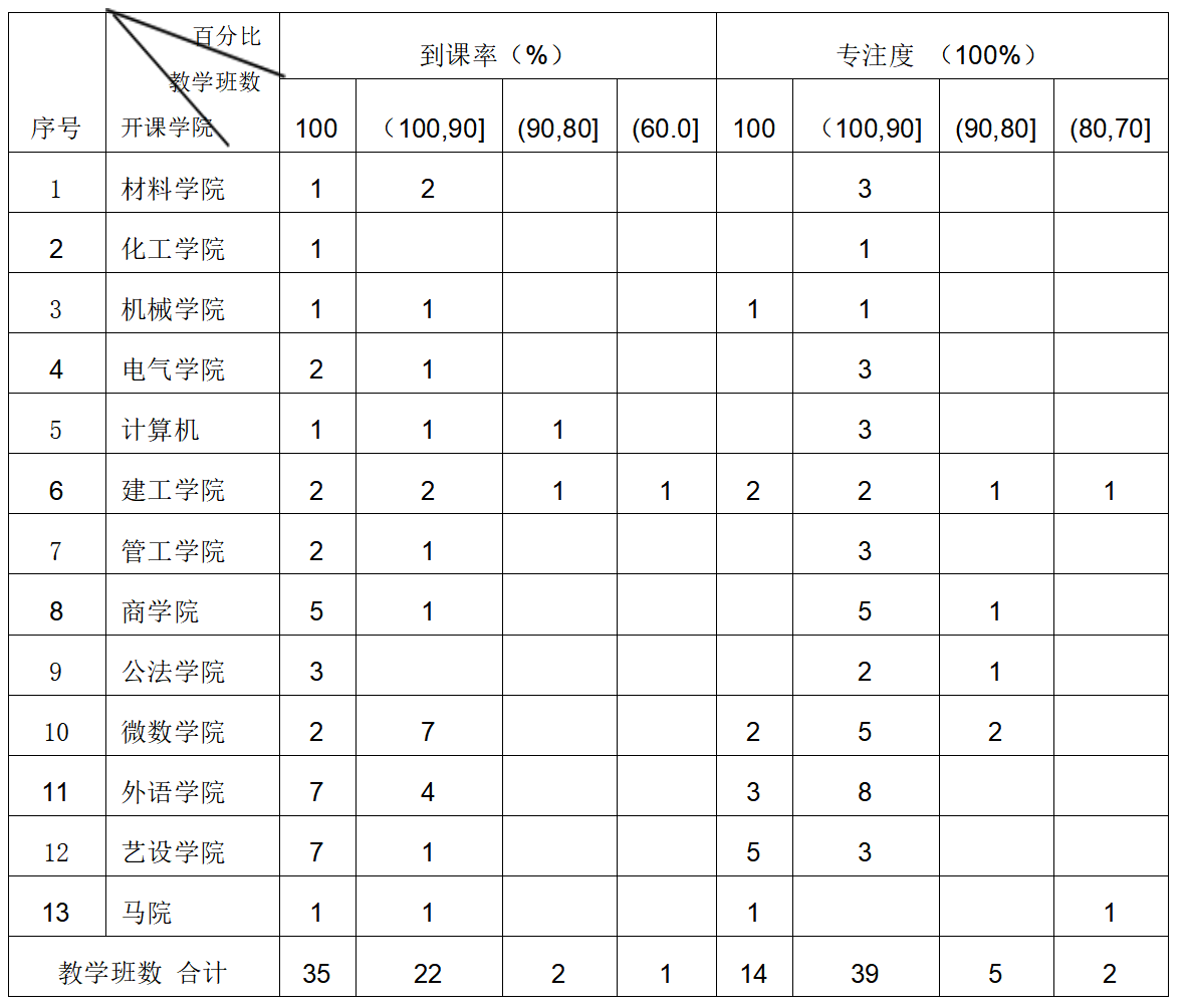 一、教学班学生到课率、专注度情况