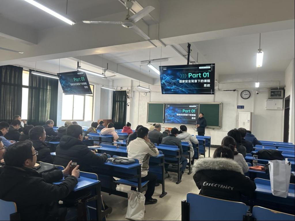 龙长安作了《国家安全背景下的课程思政》专题报告,从课程思政设计的要点、建设和申报等方面进行系统讲解。陈业斌作了《基于虚拟教研室的混合式一流课程建设与申报体会》专题报告,对一流课程建设进行了深入的讲解和示范,全方位、多角度地对实践经验进行了分享。与会教师积极参与,共同探讨了如何将思政元素与专业课程有效结合,以及如何提升教学团队的协作与创新能力。