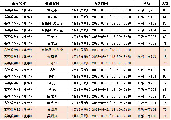 2024-2025(2)高等数学A1、B1、A2、B2重学课程考试安排如下: