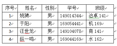 校乒乓球队(男子甲组)将于 2018 年4月8日—4月15日参加在蚌埠举办的安徽省第十四届运动会高校部乒乓球比赛。经领导批准,同意以下同学在此期间请假