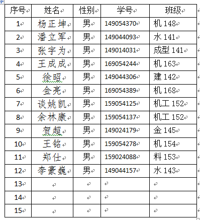 校排球队(男子甲组)将于2018年4月9日—4月18日参加在蚌埠举办的安徽省第十四届运动会高校部排球比赛。经领导批准,同意以下同学在此期间请假。