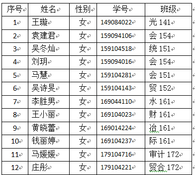 校篮球队(女子甲组)将于2018年5月10日—5月20日参加在蚌埠举办的安徽省第十四届运动会高校部篮球比赛。经领导批准,同意以下同学在此期间请假。