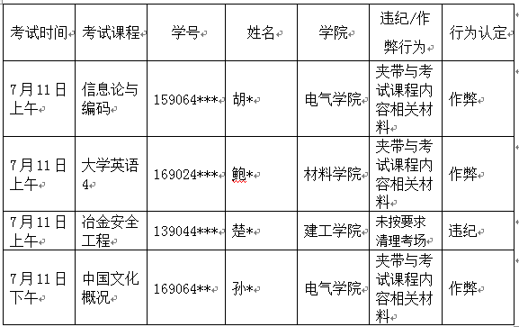 1.上午考试中,东教一南504考场建工学院两位监考教师,未严格履行监考职责,对考场出现的异常情况未及时上报。