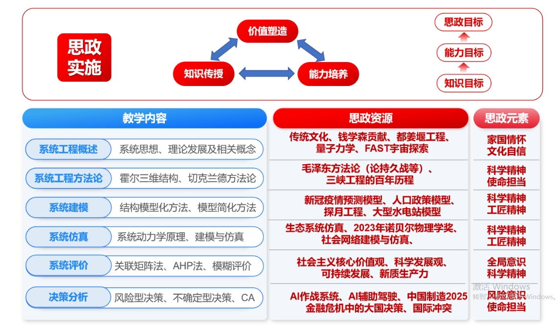 系统工程课程的思政建设,本质上是通过马克思主义认识论和方法论,把解决复杂问题的工程思维与价值观培养深度融合,让学生既懂技术又有家国情怀。