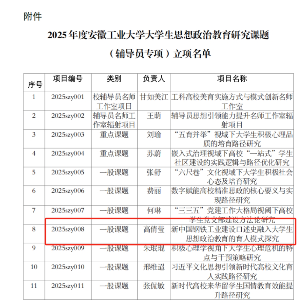 2025年度安徽工业大学大学生思想政治教育研究课题(辅导员专项)
